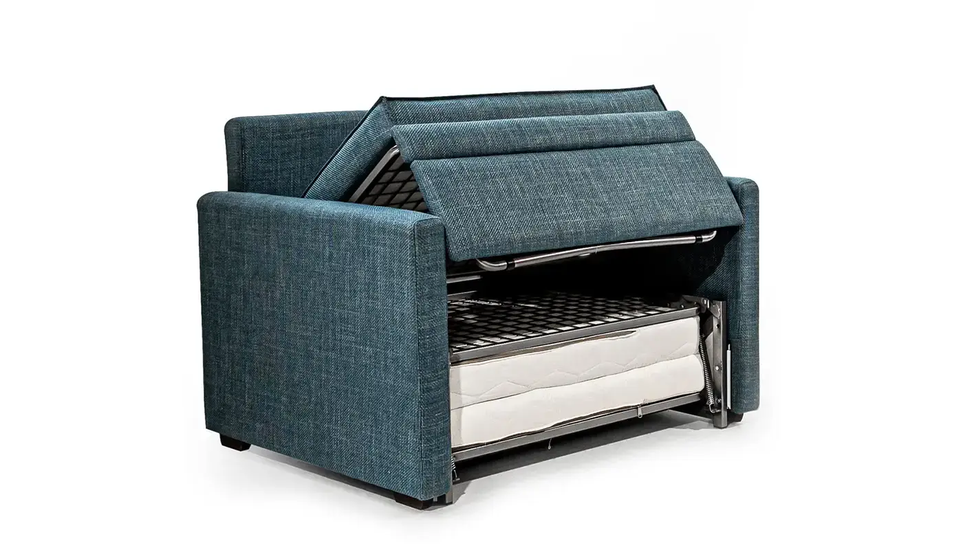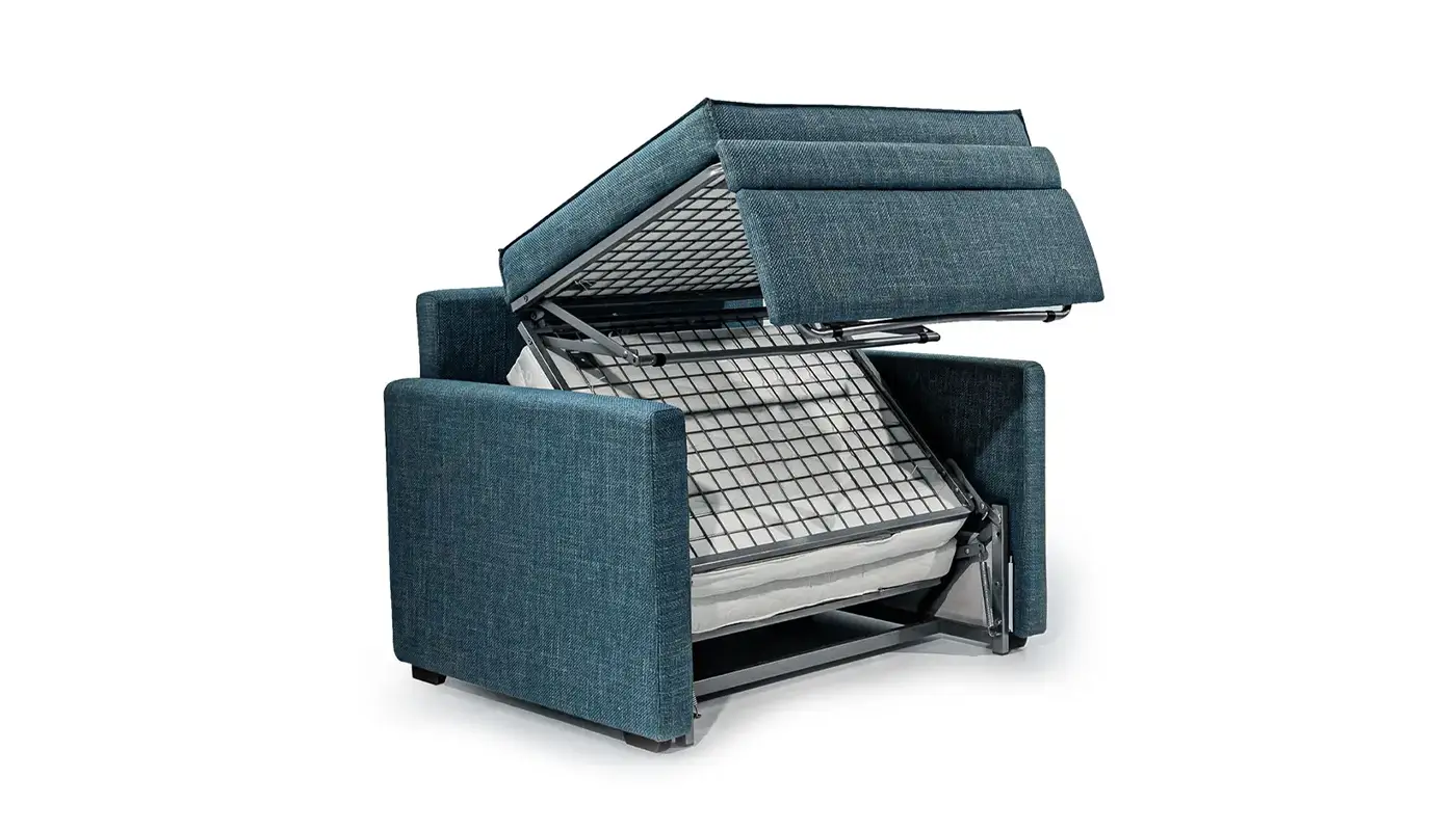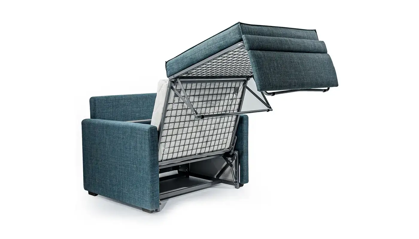 Ο Ιταλικός αναδιπλούμενος μηχανισμός EasyFold με ατσάλινο πλέγμα στη βάση σε συνδυασμό με τα ποιοτικά υλικά, όπως το στρώμα από Ultra latex 10εκ., το κάλυμμά του στρώματος από βάμβακι και aloe vera, το αλέκιαστο – antiscratch κάλυμμα και το μαξιλάρι πλάτης latex flakes & comforel που αφαιρούνται και πλένονται, προσφέρουν υψηλή αισθητική και καθημερινή χαλάρωση.